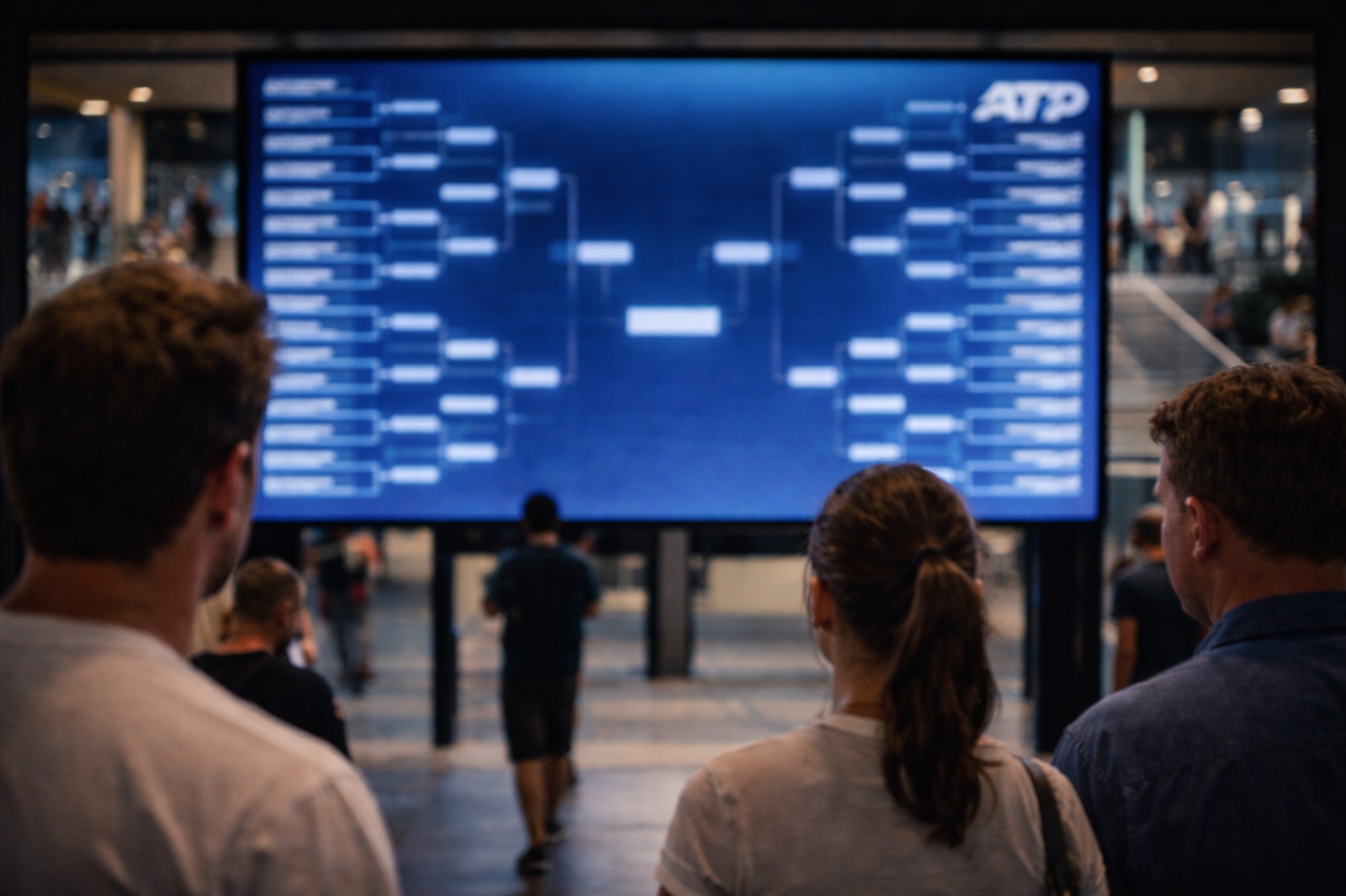Tableau d'affichage d'un tournoi ATP montrant le classement des joueurs de tennis